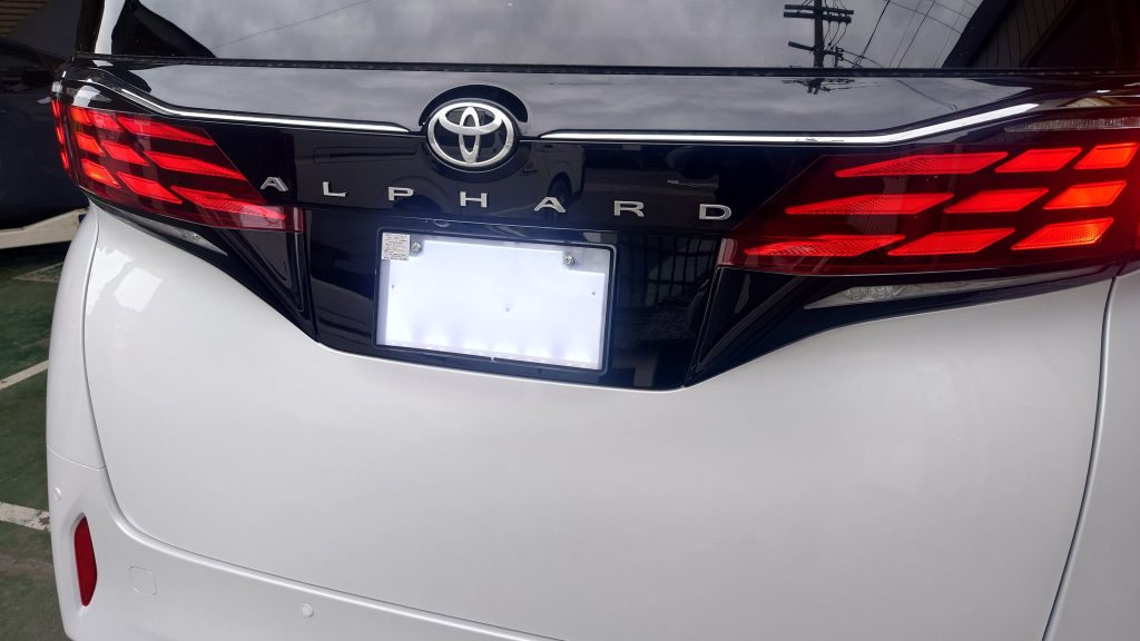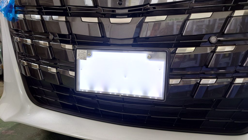 今回は40系アルファードに字光式ナンバーのプレートの取り付けの写真です。